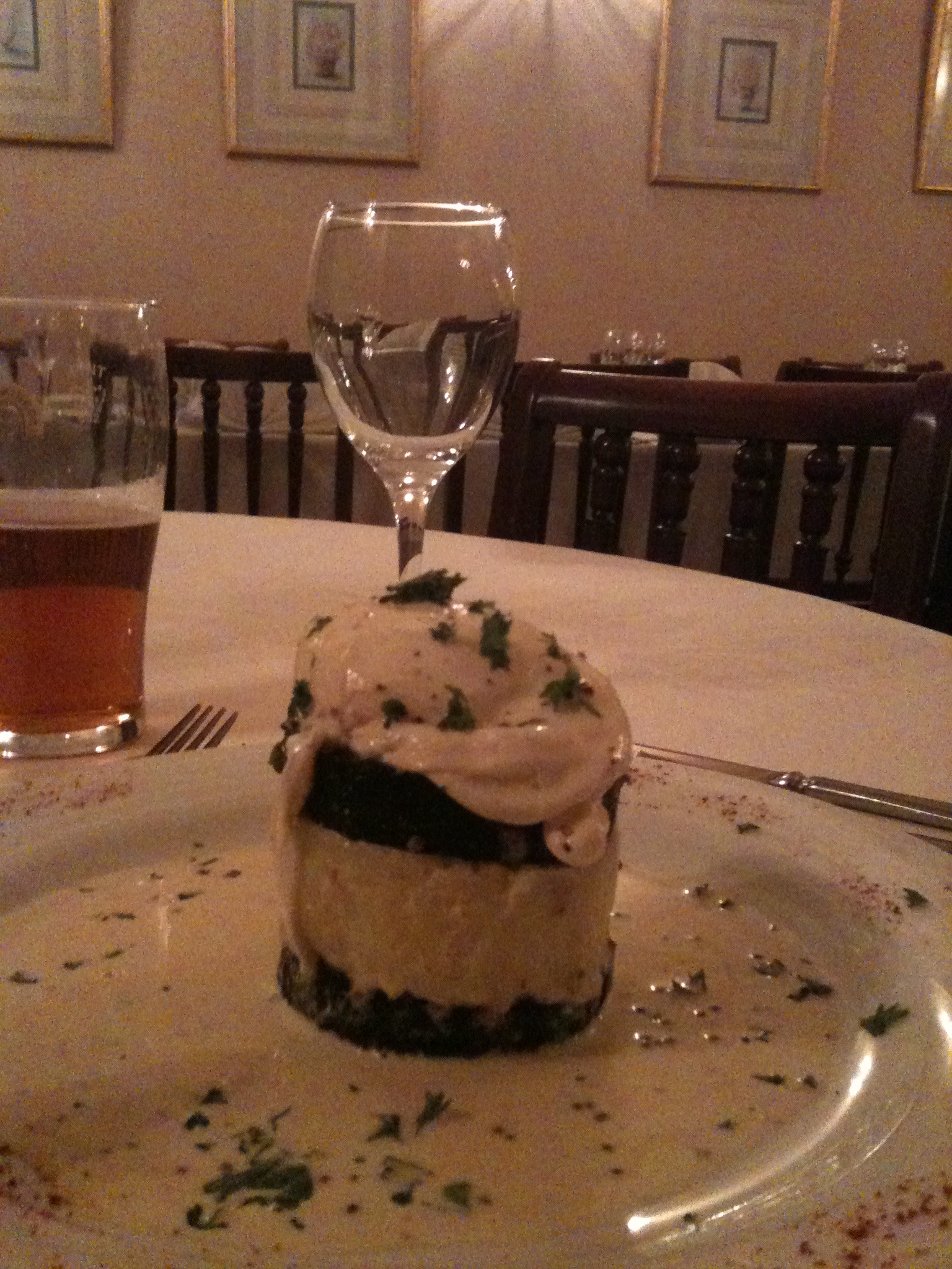 I know it looks like a dessert but I think this is the idea, hence the name. It is black pudding top and bottom, with mash in the middle, topped off with a poached egg done to perfection. The mustard sauce is just superb too. Silence descended as we tucked in.