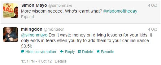 But…we got car insurance for our 17 year old ( then) learner..to drive, as a named driver of a five year old C1.. For £750 more than for just the two of us…the £500 more on renewal once she had passed her test. Direct Line ! And no…I don’t work for them…but thought I’d share 🙂