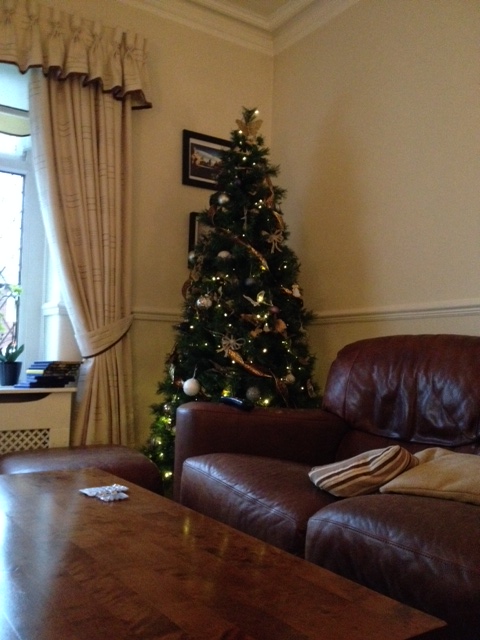 Our tree is up, so allow me to post an exact replica of last year’s picture of it.
