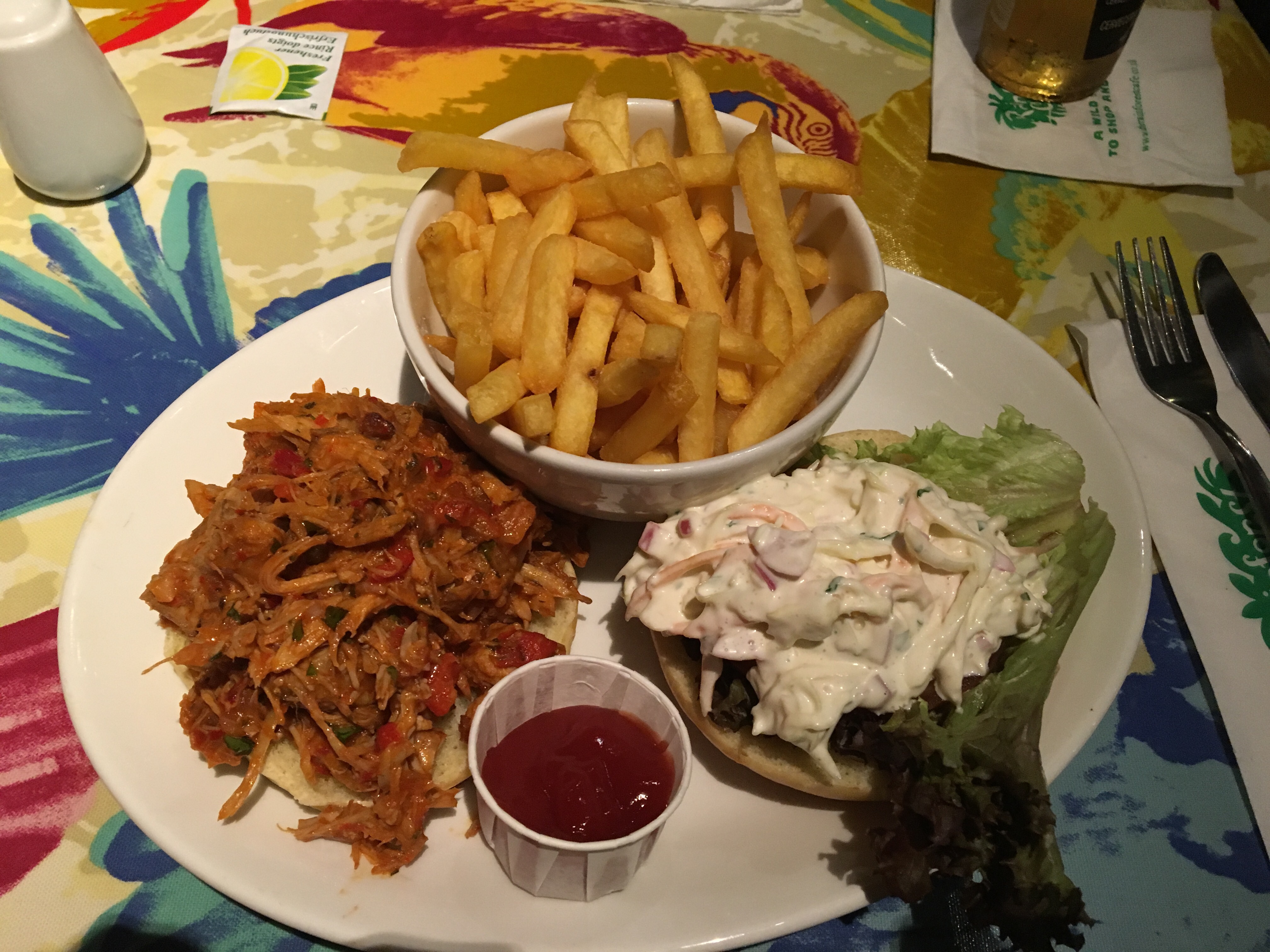 We were seated quickly after I had used all my powers of persuasion to have the bartender serve Emily some alcohol. Nachos to share as an appetiser before the mains arrived.