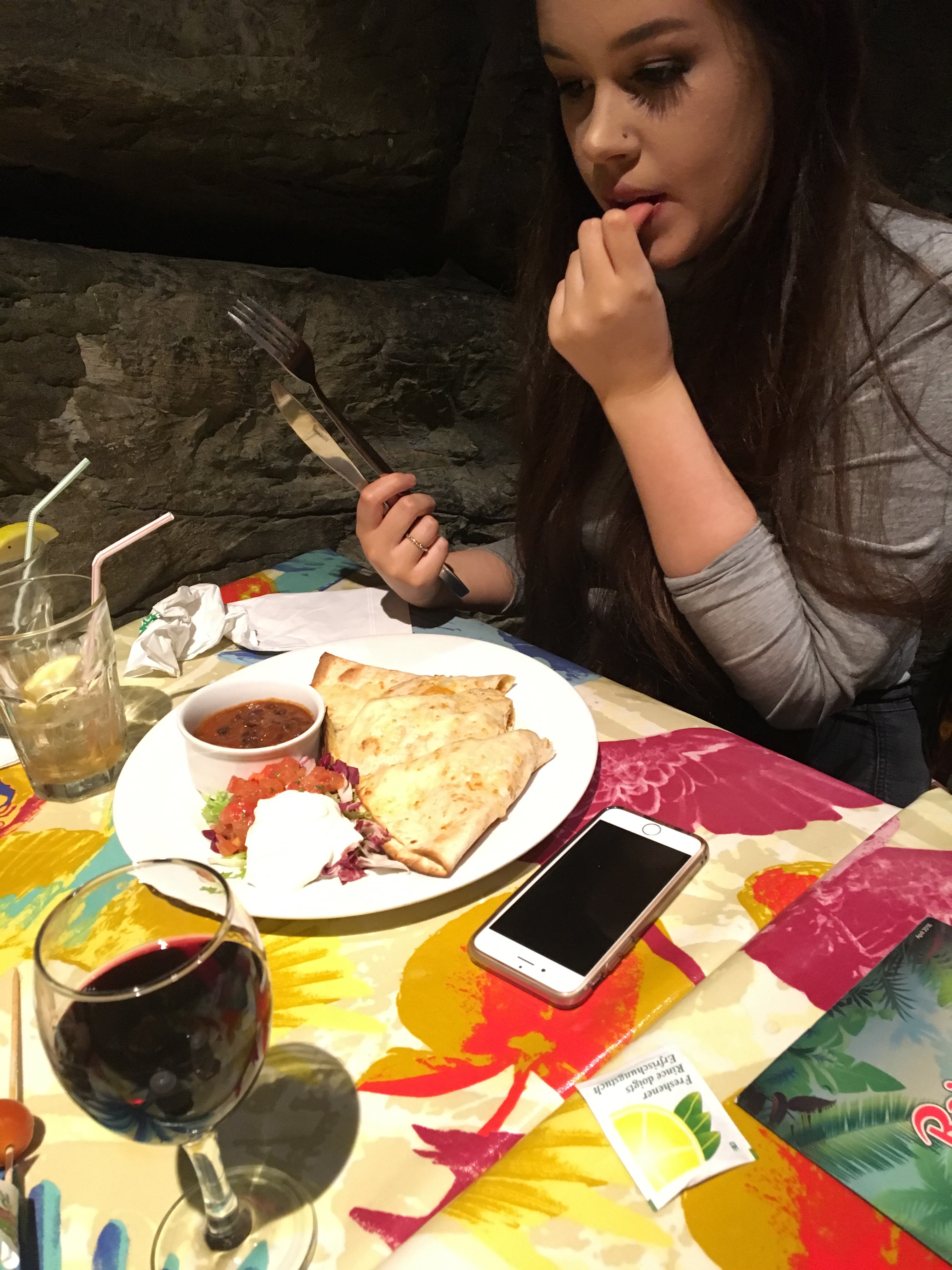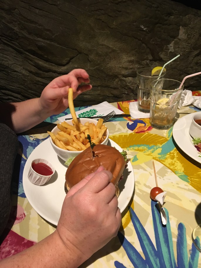 Showers baths and resting happened before another Uber down to Shaftesbury Avenue. With the myriad of top class dining options at her disposal Emily had chosen to eat at the Rainforest Cafe.