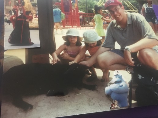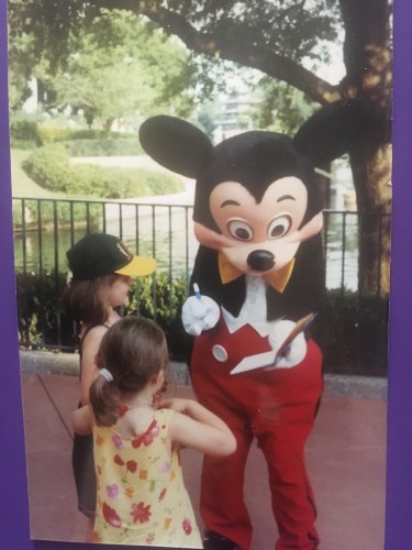 I think all of these I’m sharing today are from that 2003 trip. Rebecca was four and Emily six. Look how Mickey was just wandering about near International Gateway. Now, you need a FastPass, security clearance and retina scans to meet the main mouse.