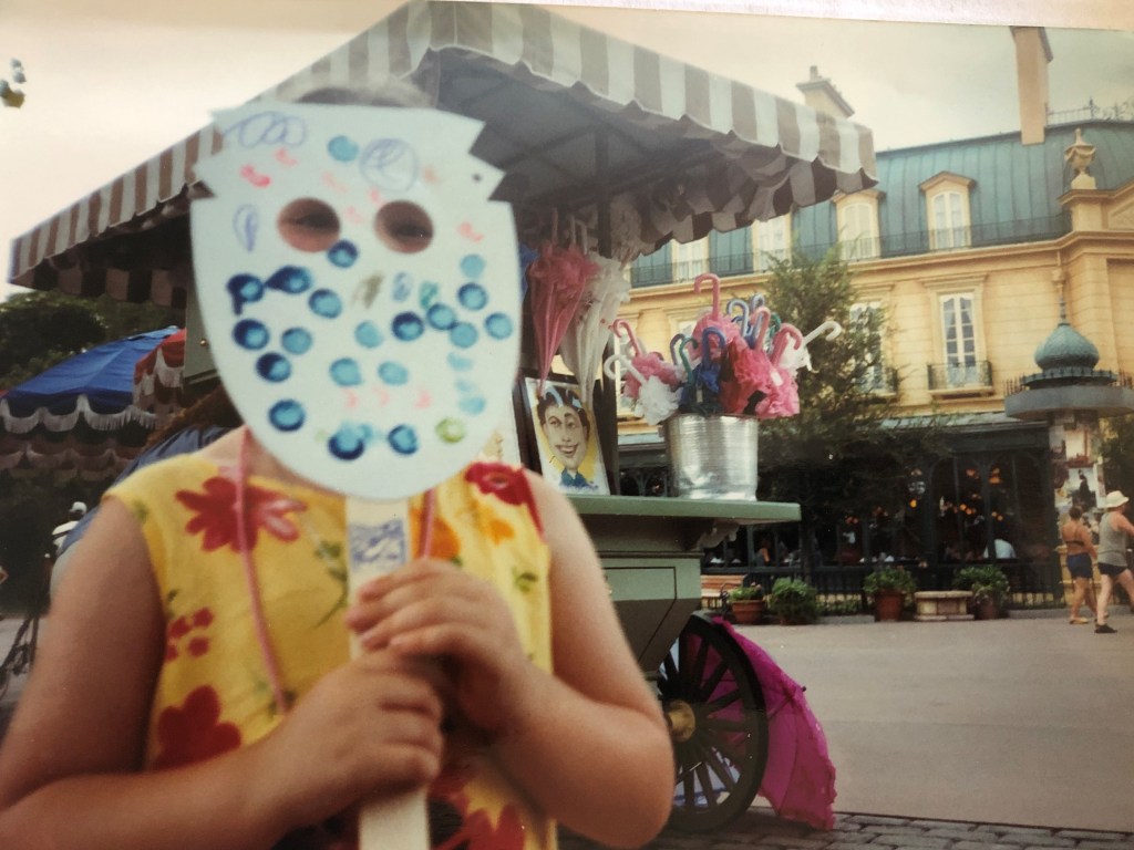 Again, I am guessing but I think this is 2001 again based on Rebecca’s size and dress. This, if you can’t work it out is in France in World Showcase. The hours we spent with the girls getting those masks done. Every minute of them an absolute pleasure.