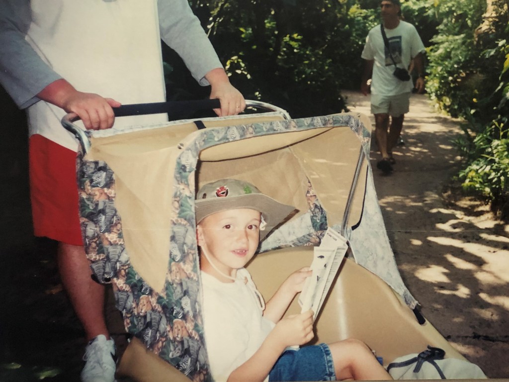 Again from 1999, and this is my brother’s eldest son, Jack, at the time around six I think. This was when paper maps were relevant and in the Animal Kingdom, we still needed one. The park hadn’t been open that long at the time.