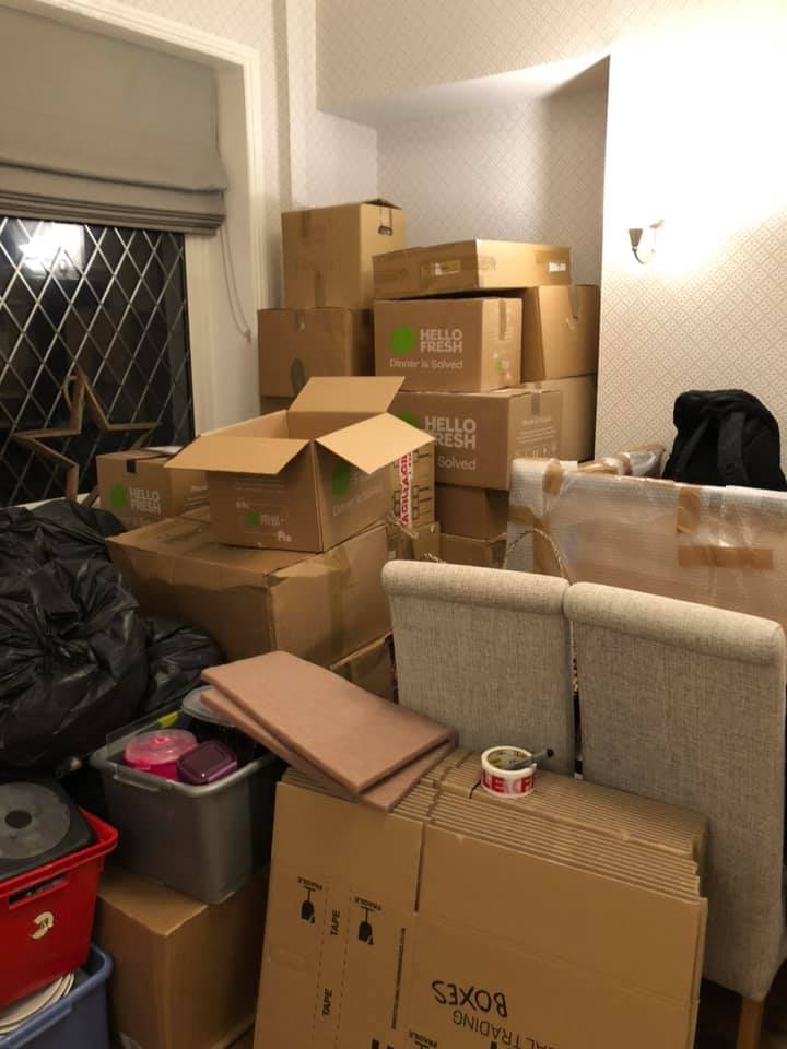 Having had a bit of a week, yesterday I undertook some hard labour and carried a lot of boxes down from Emily’s bedroom. She is up in the loft so that was two flights of stairs per box. I then emptied the spare room, Rebecca’s old room, of 90% of the boxes in there too. This is why the dining room looks like it does. By mid-afternoon, after also clearing out and either binning or packing up some of the kitchen, I got a little tired and emotional. I think if any of you had tackled your “under the sink” cupboard, you too may have found that to be the straw that broke your back.