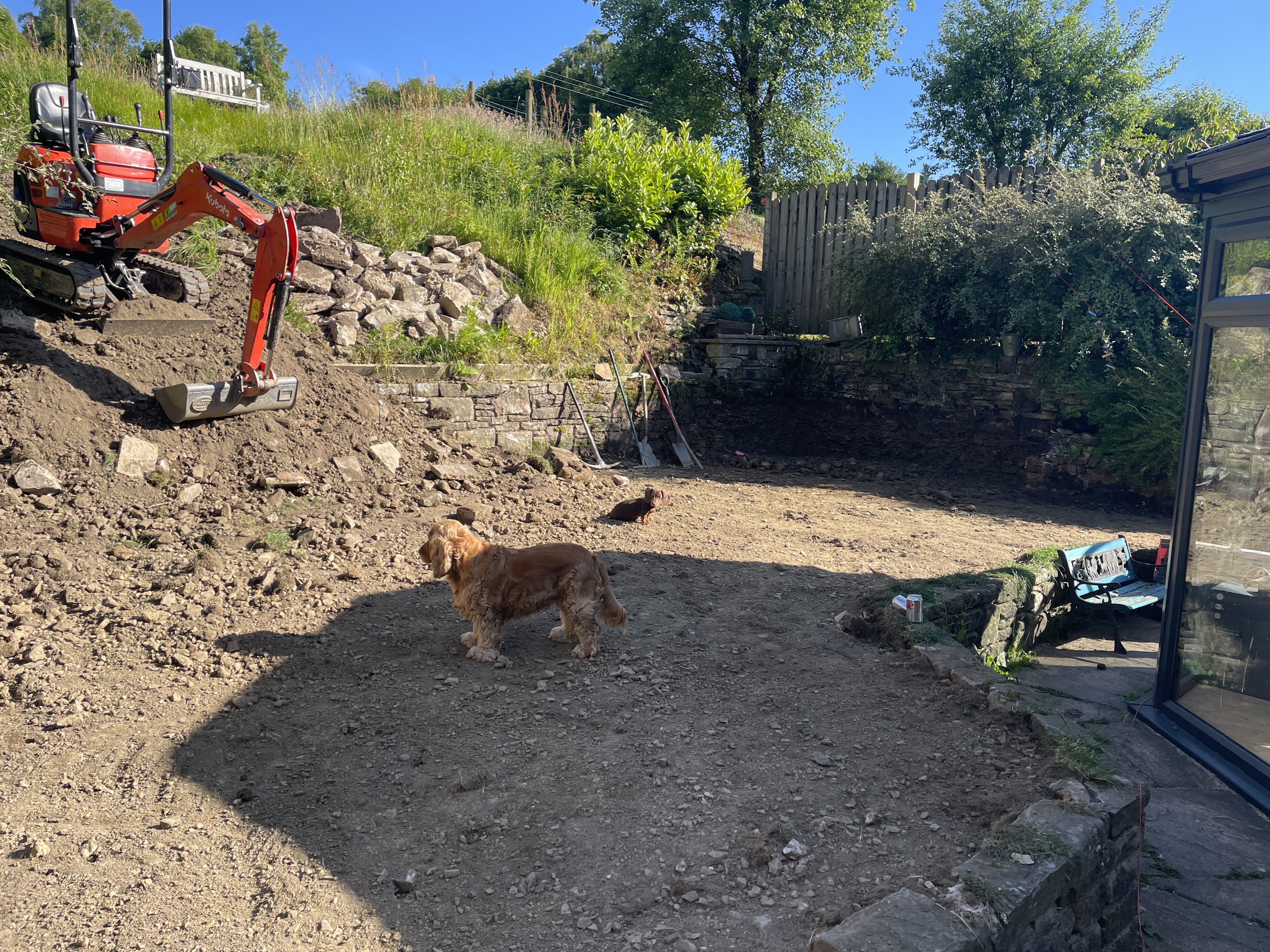 In a normal house, turning a lawn into a patio is fairly simple. But when the access to the back of your house is via a near-vertical hill then it becomes challenging. The comedy show of watching them trying to get a mini digger down that incline was too horrible to watch.