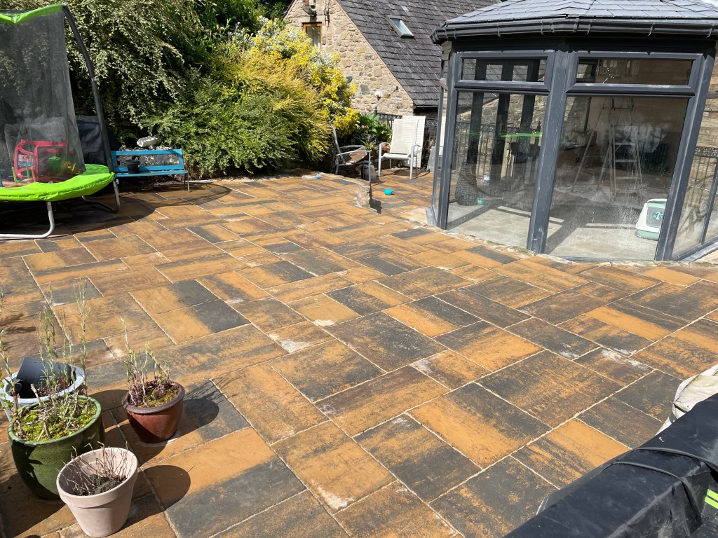 This week saw Magic Mike and his mates doing all the cutting of the flags to fill in the bits around the edges. Endless noise (sorry neighbours) and a dust cloud suggesting a volcano had gone off not too far away made for a lovely time.