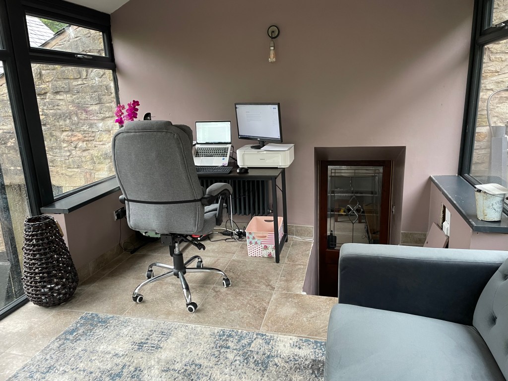 Anyway, I moved my “office” into the conservatory on Friday, unable to wait any longer. The bits left to do are largely outside and what passes for my office (a chair and a desk) won’t get in the way. Louise isn’t keen on my less than sexy office furniture messing up her lovely new room so they may be in for a swap out at some point.