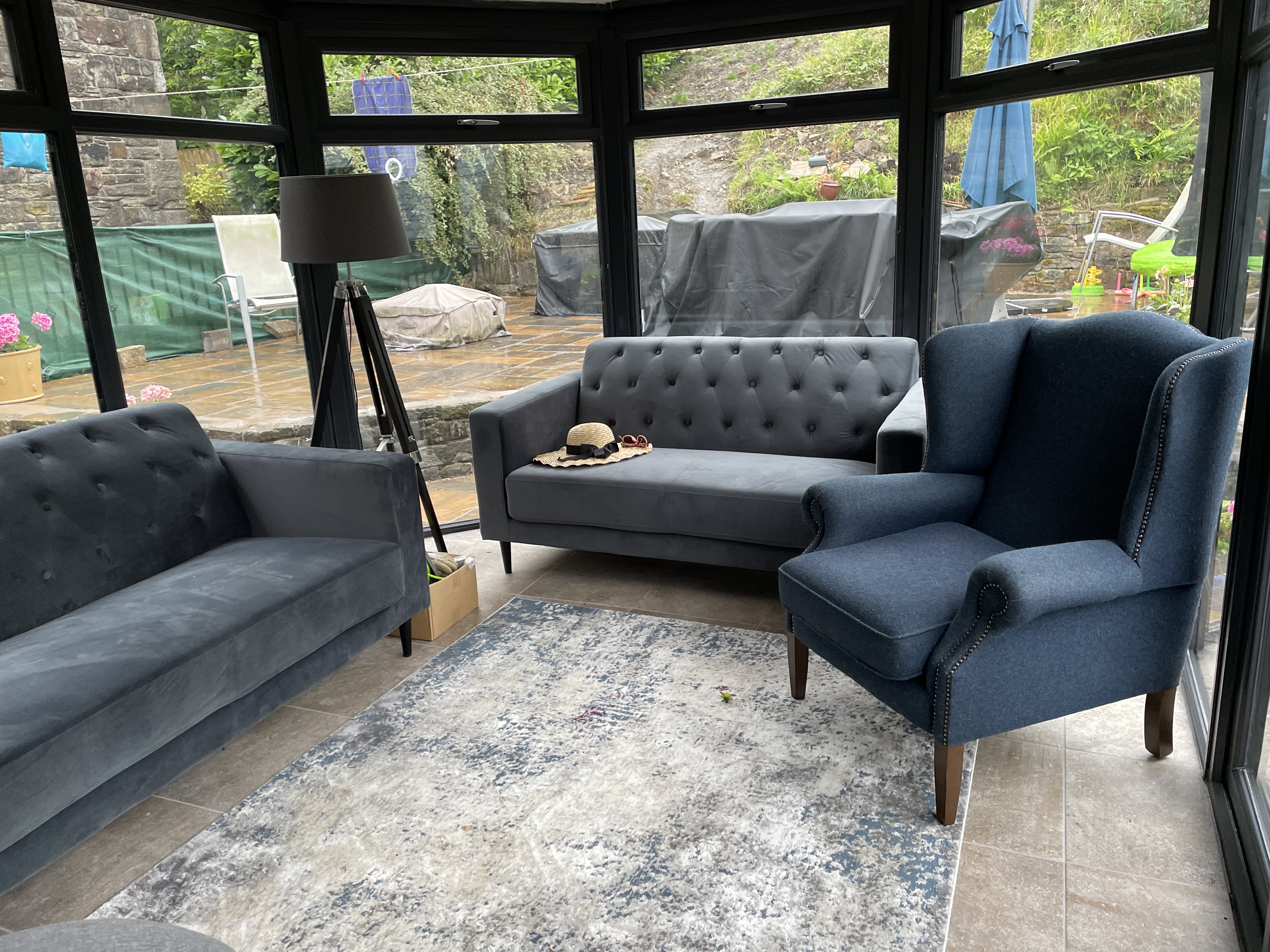 That blue wing-backed chair doesn’t officially live there but I wasn’t moving it to take a photo! You can see that outside is still in a state of flux too, awaiting the next phase of work.