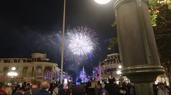 We ate far too much of it and at one point the fireworks happened at Magic Kingdom and the music was piped in. Our table location made it hard to appreciate that.