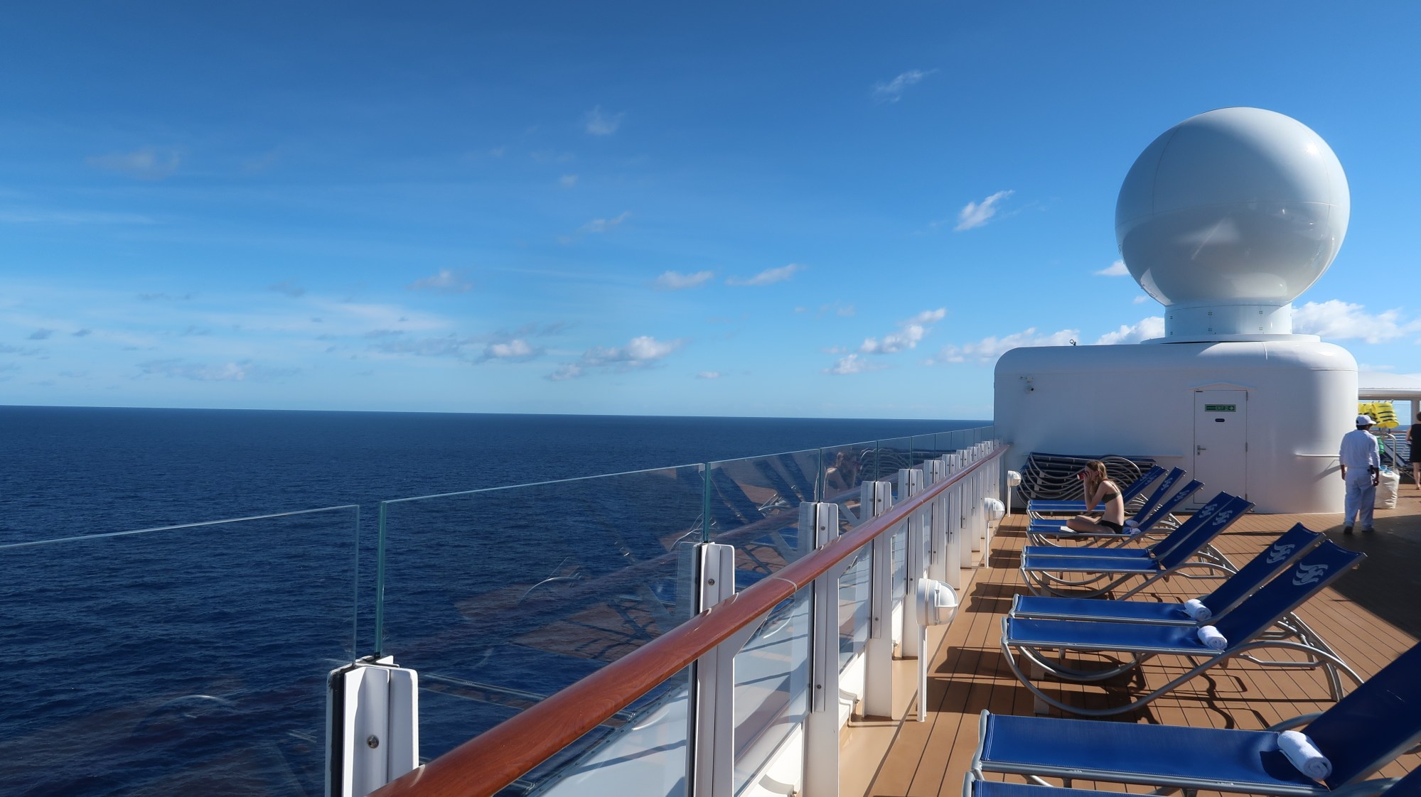 We left this lovely location to go to another up on deck 14 to find some sunbeds. It didn’t take us long to work out that the first ones we chose were not right as the sun was shining on the opposite side of the ship so off we toddled to some beds around there.