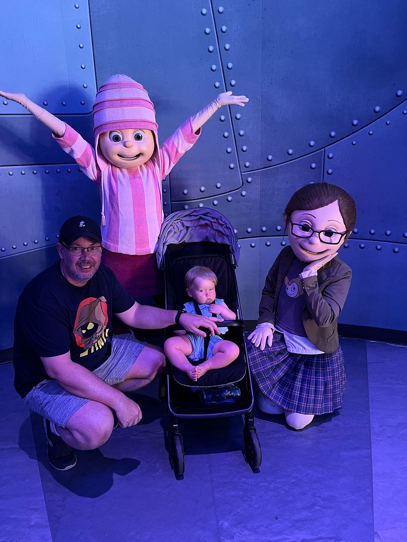 Between crowds coming out of the ride, I snuck us in for a quick meet and greet.