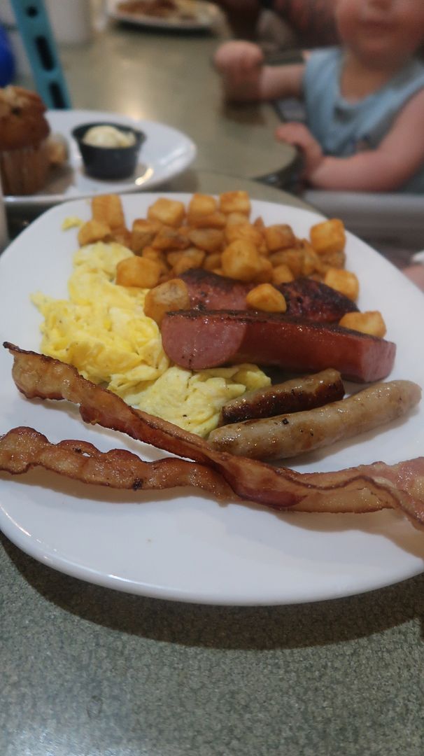 Breakfast was required so we headed up to the 192 and a Perkins. It was a weekend so it was busy. I ran in to make sure we could get a table before everyone else went to the trouble of leaving their vehicles and we were in luck. We were seated immediately and literally just beat a rush of folks coming in who then had to watch us order and eat for quite some time before they were seated.
