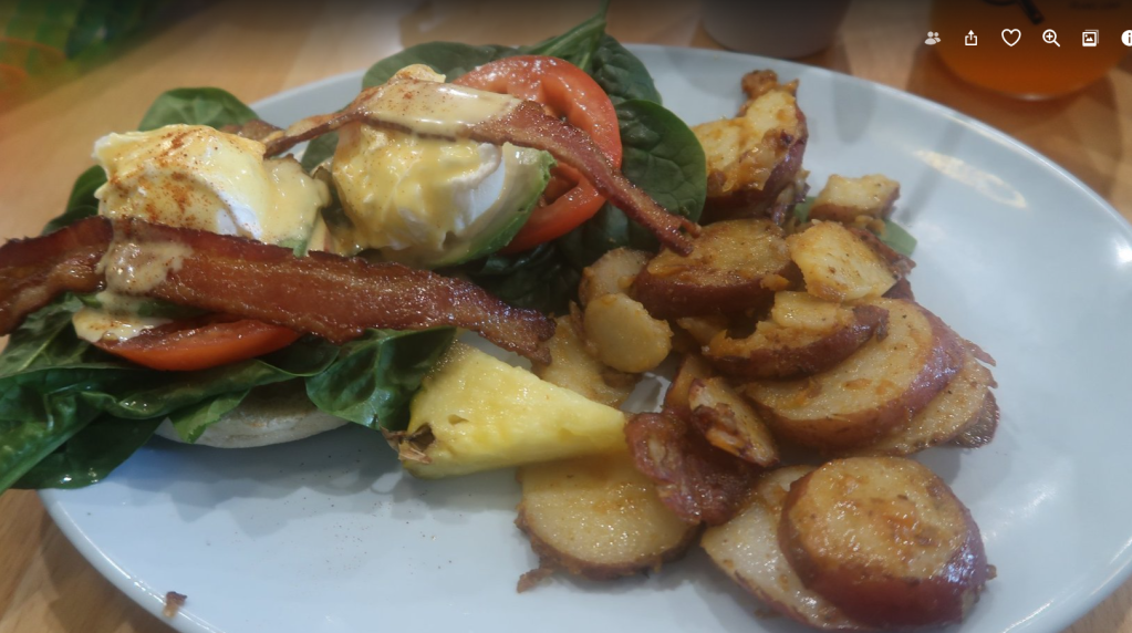I am only slightly ashamed to admit that Louise and I ordered one of those Boston Cream Pie Pancakes to share after finishing our Eggs Benedicts and it was very much the right thing to do.