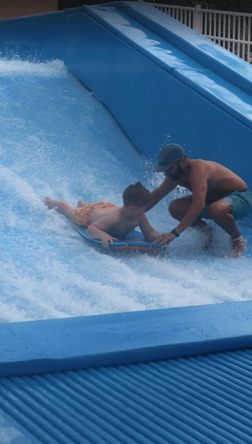 As his session came to an end he hadn’t had any form of wipe out which would result in him shooting up over the top, so he intentionally fell off and did just that. He absolutely loved the whole experience.