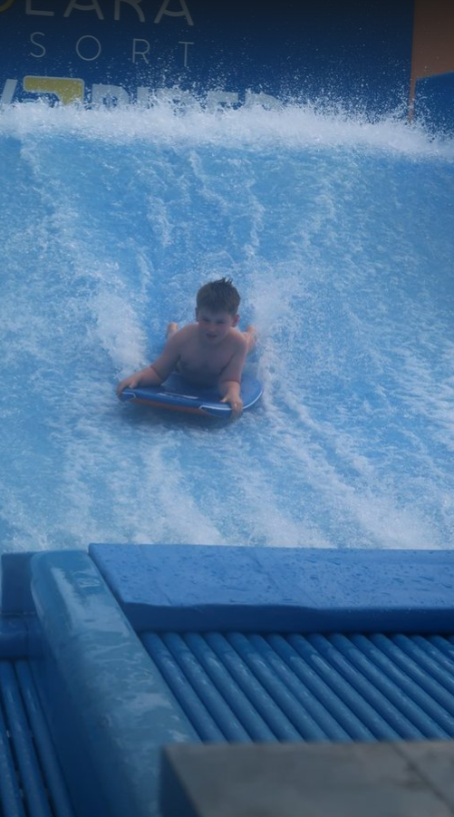 Freddie was keen to try the Flow Rider thing, so that’s what happened next. He has more bravery than I ever did at six years old.