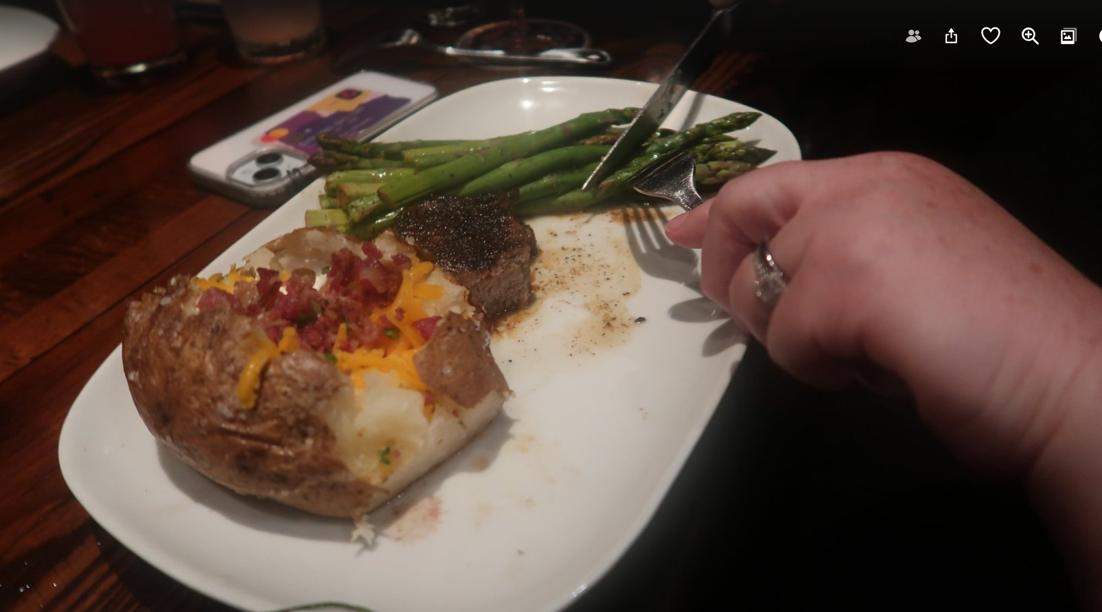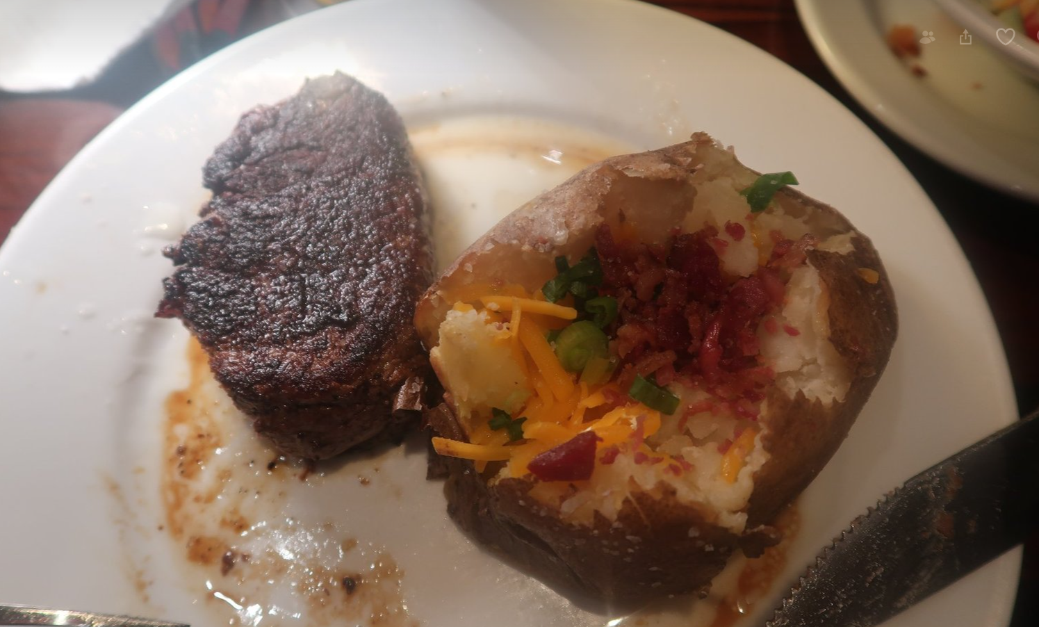 It was steaks all round, which were delicious. My loaded spud was a little cold and dry but overall a tasty meal.