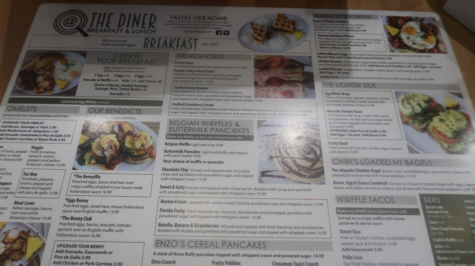 I can’t remember where I saw it but I had noted in my plan that we should try a new place called @TheDiner. It is in Lake Buena Vista not far from Crossroads and due to yet more bobbins traffic it took over half an hour to get there and there was a point, when stationary on the 192 that I considered just pulling into a Perkins or Dennys there to avoid my growing frustration with the length of time it was taking to get anywhere.