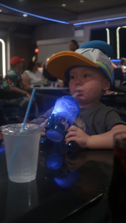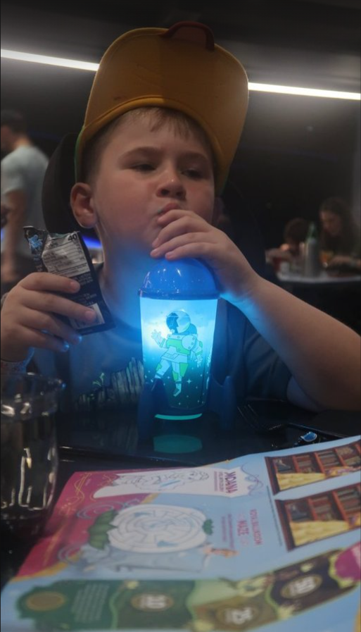Even though Dougie wasn’t having that particular special drink off the menu our server was smart enough to make sure his apple juice also glowed.
