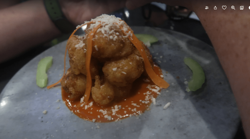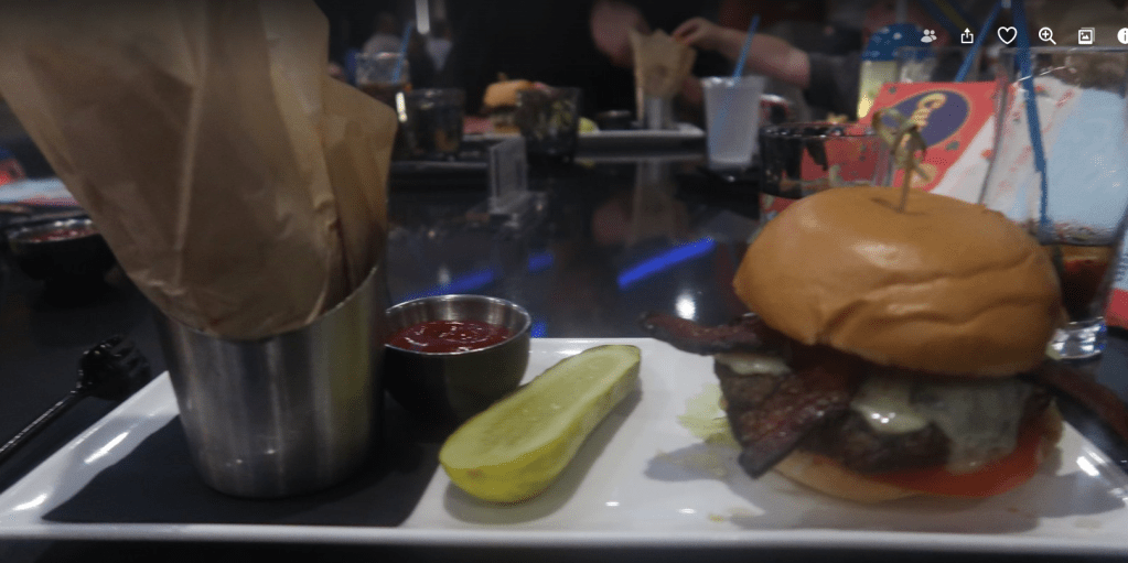 The traffic was of course horrific all the way up the I4 but the cherry on top was the 35-minute wait on the off-ramp to get to Universal parking. This, we soon found out was caused by a combo of Horror Nights traffic plus a Chase Atlantic gig at The Hard Rock. After parking the car security was also carnage but we made it in around 6.15 and Rebecca and Tom went off to be horrified, mainly by the prices and wait times.