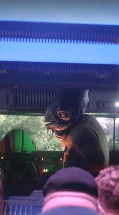 With that show enjoyed Louise and I took our turn to ride TOT. Everyone else headed back to Galaxy’s Edge where we were to meet them for our Smuggler’s Run LL. We were half an hour beyond our time slot, which stressed me out no end, but as we beeped our bands Mickey turned green and we were in after more very persistent measuring of Dougie, which he once again passed.
