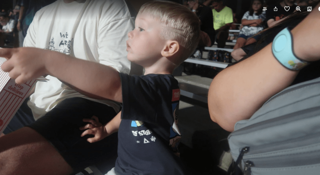 As we now made our way towards Fantasmic, the boys were bought the inevitable light-up toys and as we entered the stadium we stopped for snacks of drinks and popcorn before taking our seats.