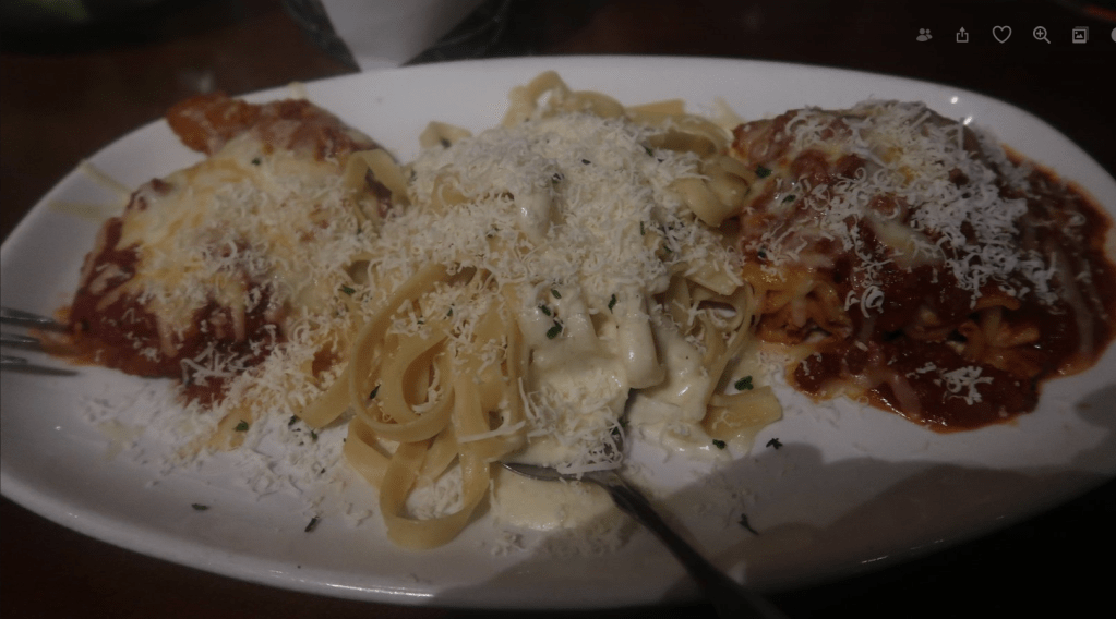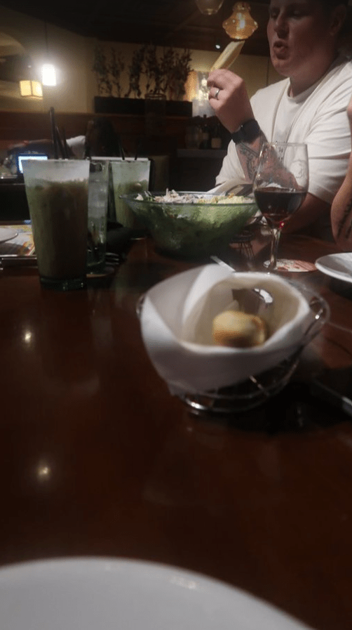 Having given Disney far too much of our money on food and LLs recently we headed off-site to eat at the cheap and cheerful Olive Garden. We arrived at 9.20 and were seated within about 15 minutes.