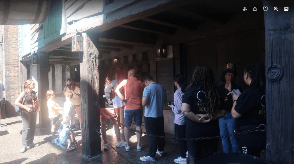 Before the second riding of Gringotts, we wandered to get some food which turned out to be a “pasty” (Diagon Alley is clearly nowhere near Bolton, the pasty capital of the world as they were not really pasties) and a drink.