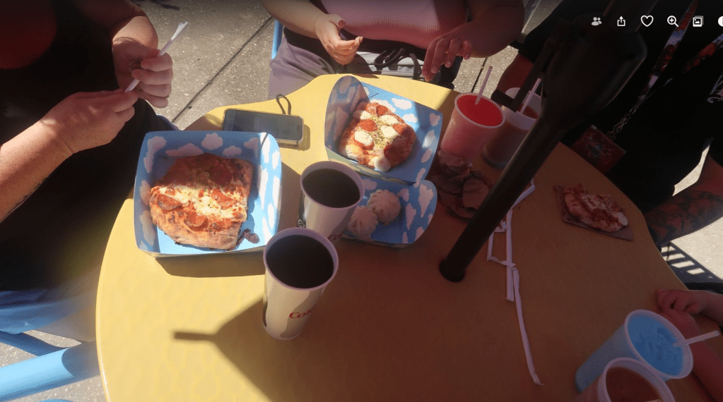 There was a need for food so we walked over to a pizza place near ET. I ordered a random selection of pizza slices and bao buns and had another wrestle with one of those fancy drinks machines, eventually managing to get some liquids in cups.