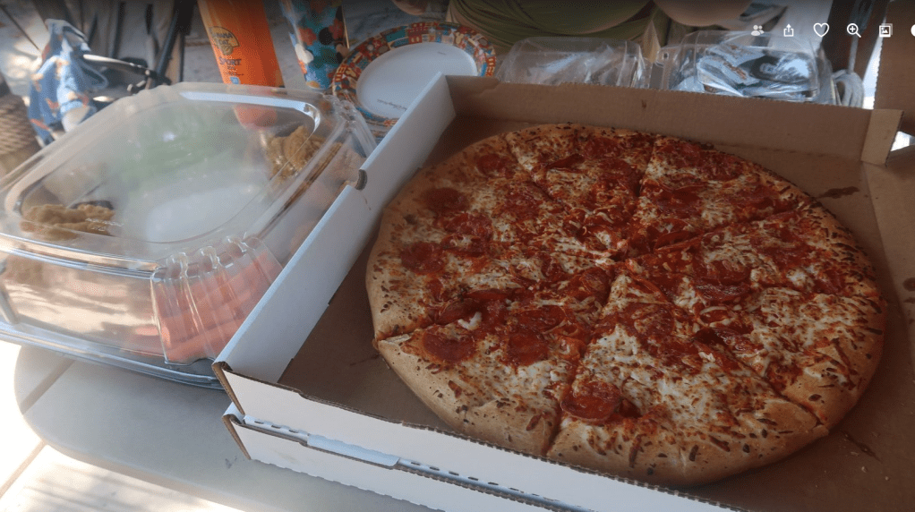 We filled up our refillables, dodging the customary swarm of wasps at the filling station. Louise and I relaxed while everyone else went off into the water. The weather was stunning today and it was lovely to do not much. It got so warm that Louise and I ventured into the lazy river for a lap to cool off.