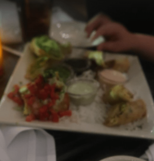 Tom and Rebecca a blurry Egg Roll Sampler