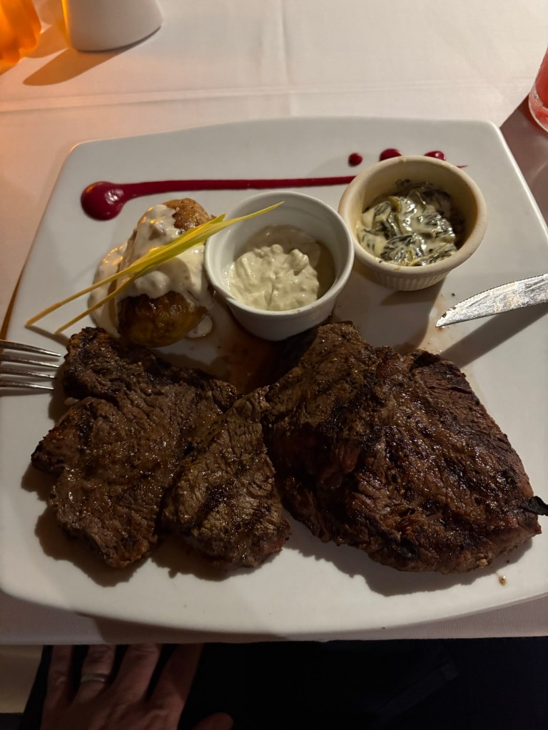 We chose the Seaside restaurant for dinner. It was pretty empty being later now and we sat at a table at the edge of the restaurant and spotted raccoons wandering about again. They are very cute.