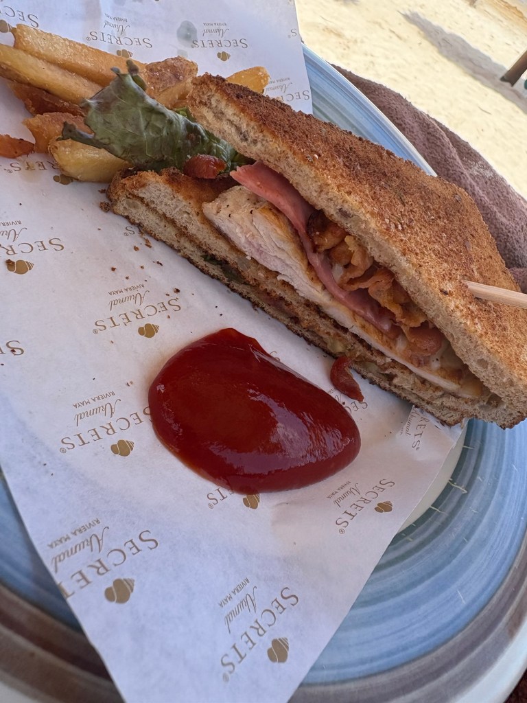Just to mix things up today we shared a club sandwich for lunch after some lazing.
