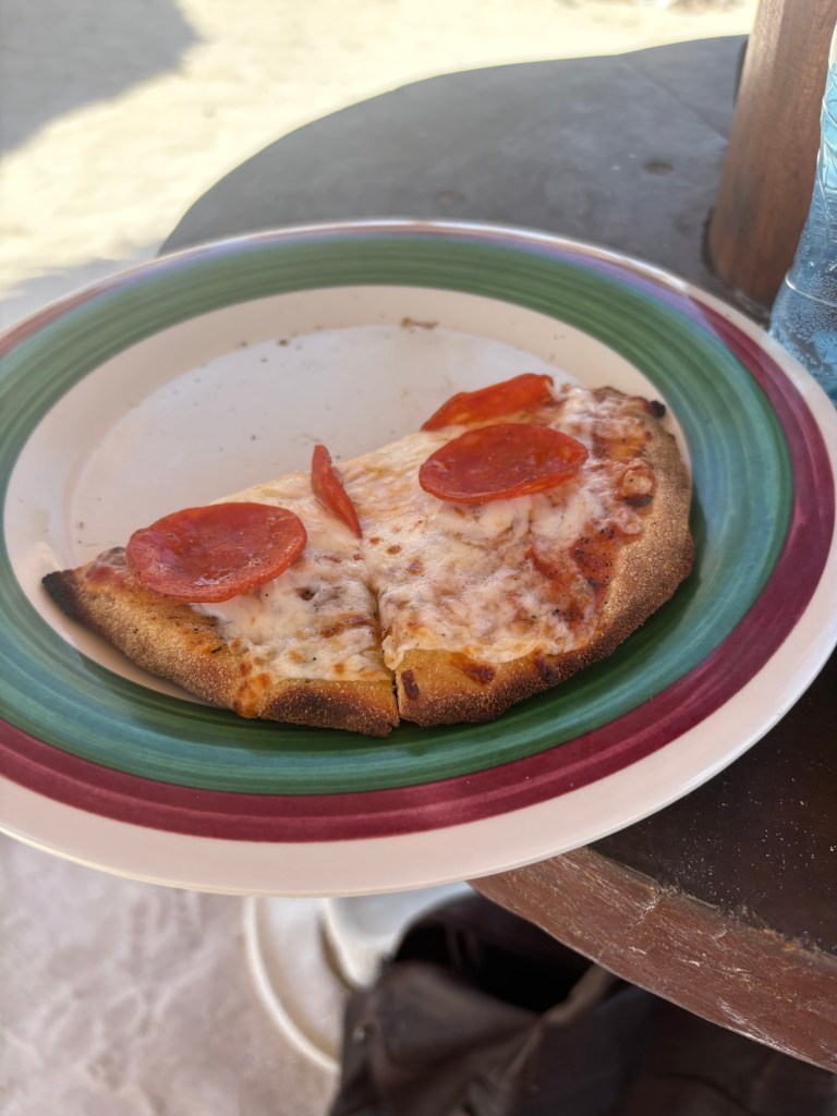 More beach ensued. Feeling guilty that we had not made use of all the food options on offer yet I went and got some meat from the poolside barbecue and a pizza from the pizza oven. The pizza was lovely but the meat was a bit fatty for me.