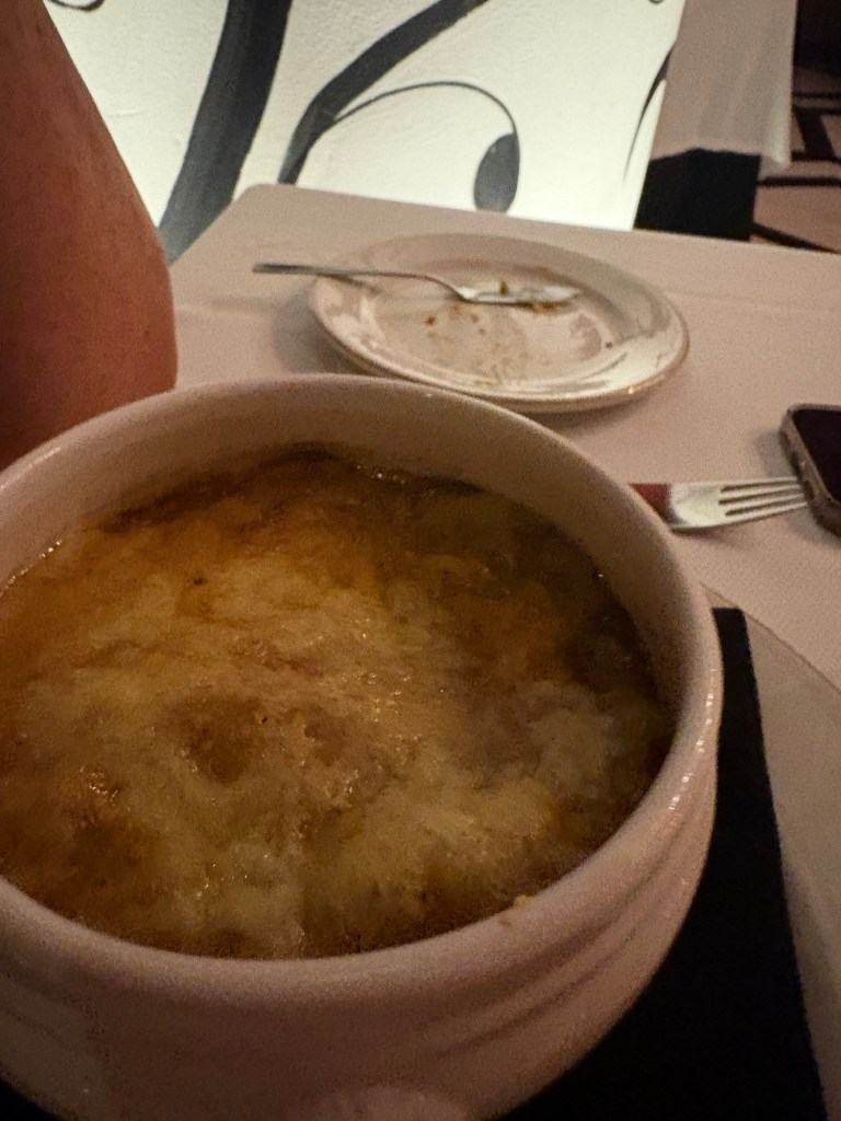 Out at 7.30. Bordeaux tonight and we had a twenty minute wait so we got a drink in lobby.