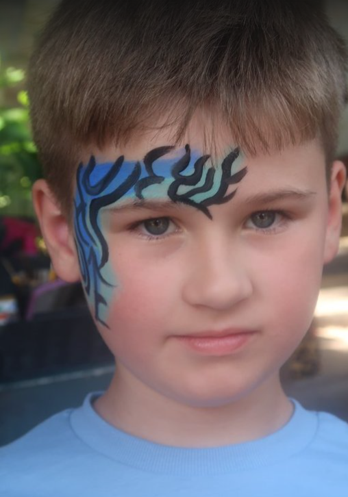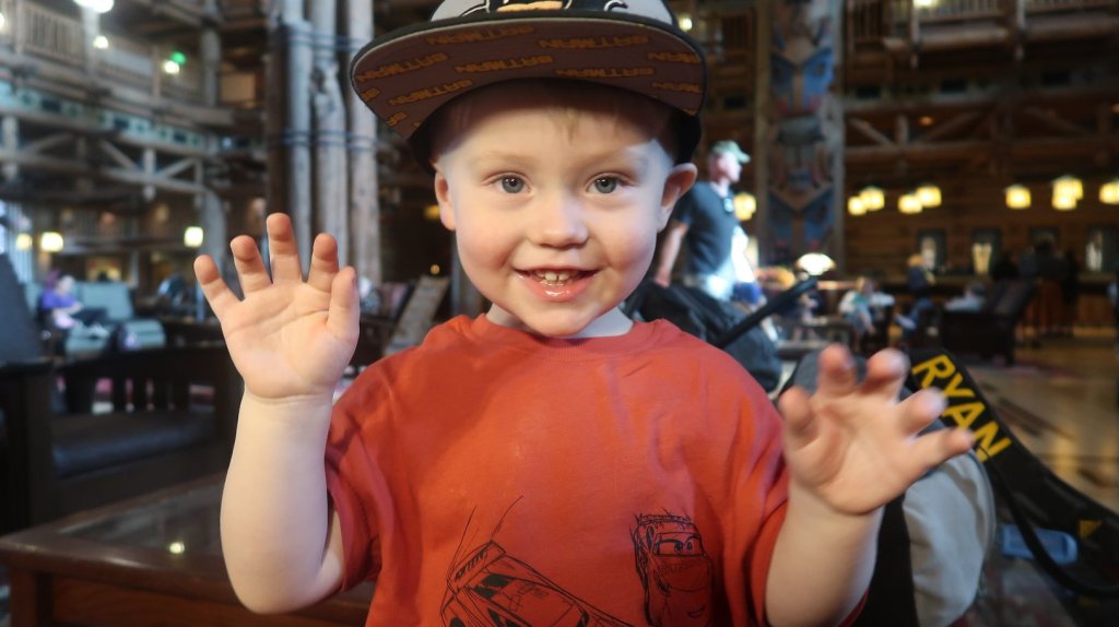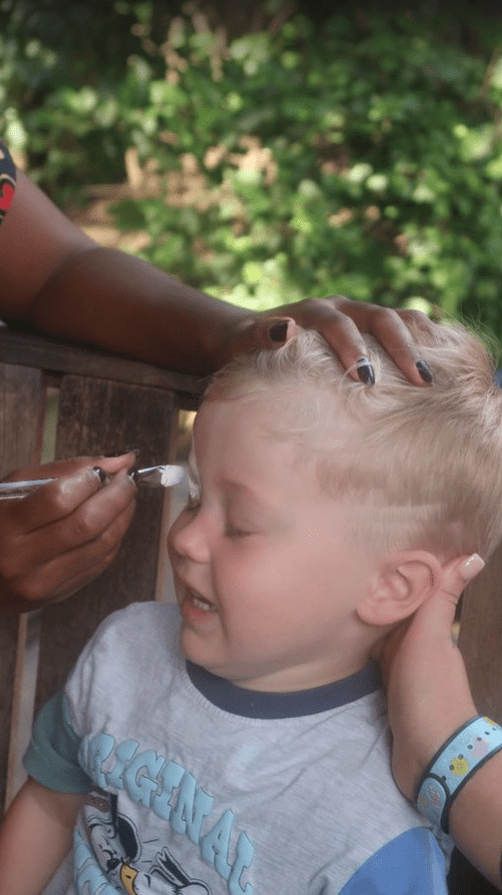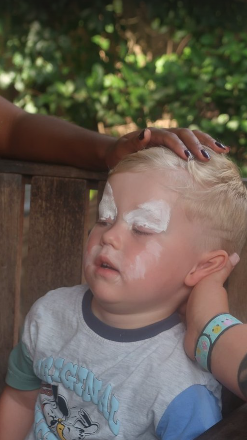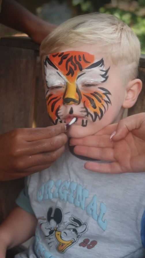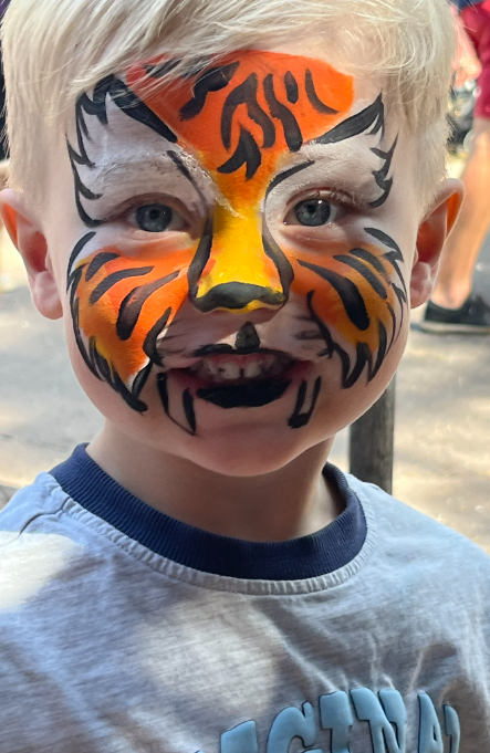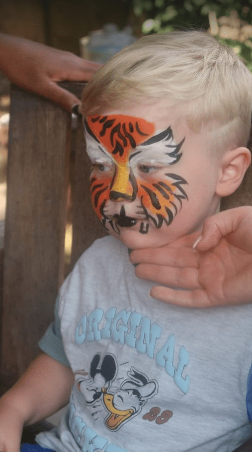Now, we had about twenty minutes to kill before the next Lion King Show, so the boys’ faces were painted. Dougie was happier about it than he looked.