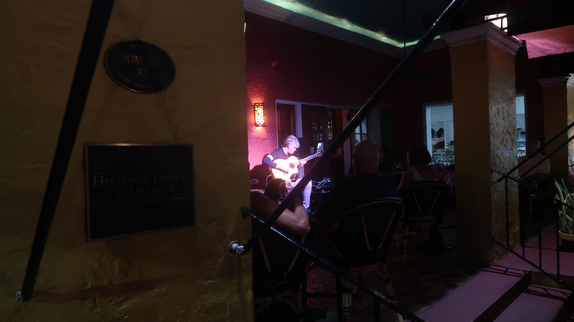 Right across the road from Amar was the oldest hotel in Delray. Of a weekend, on their porch they had musical entertainment so we wandered across the road and loitered for a few minutes hoping somebody would bugger off and free up a table. Amazingly they did and we swooped.