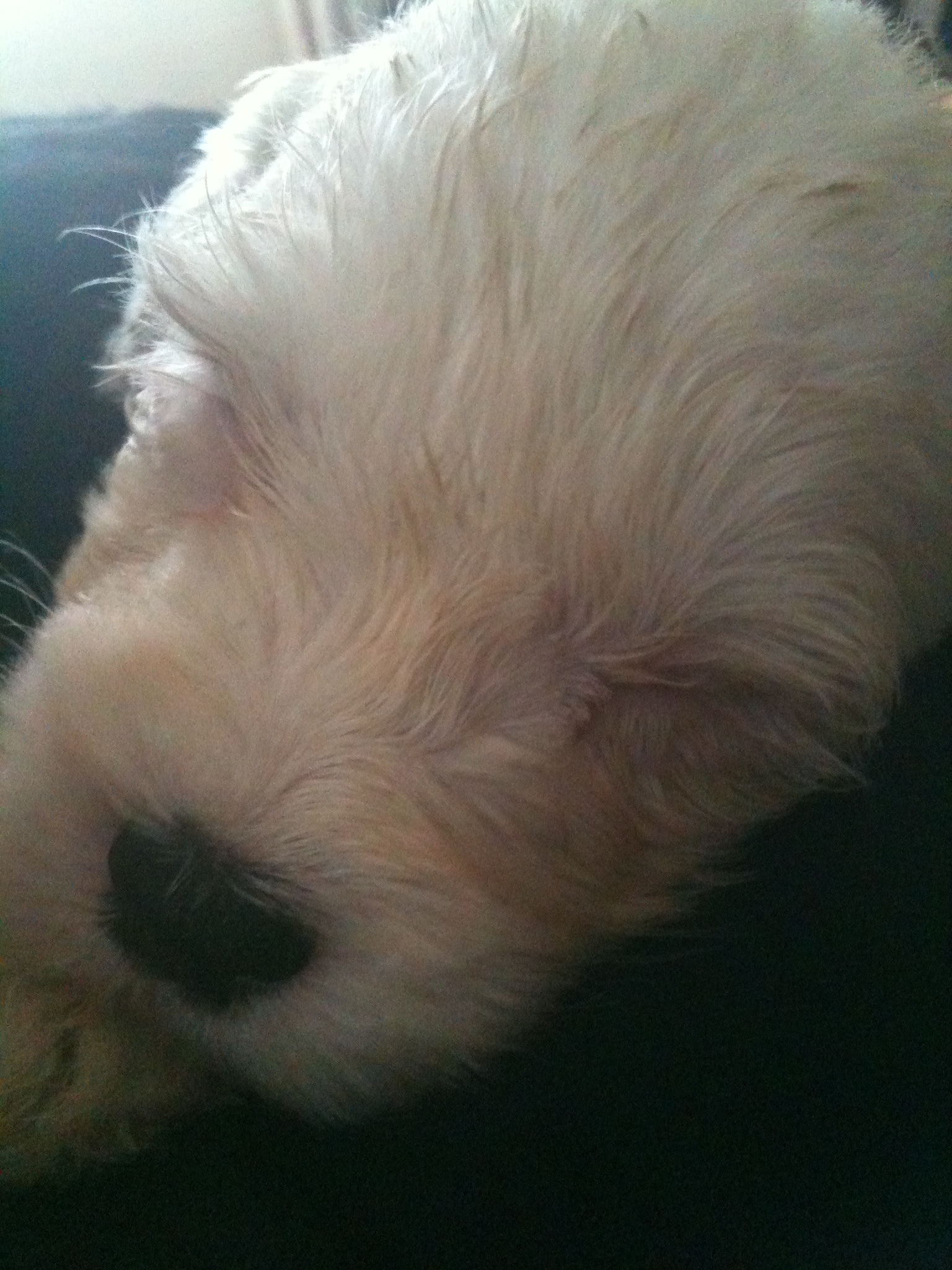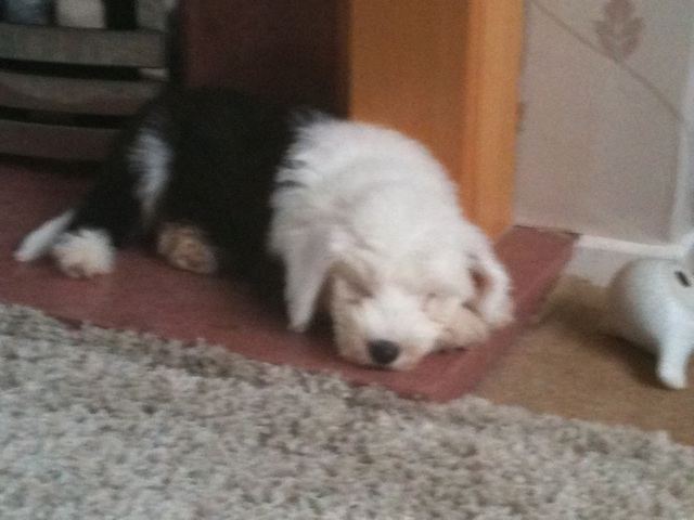 Yesterday Oli and I ventured out onto the local park in the freezing cold and snow to get him nice and dirty ready for his bath when we got back in. Post bath, once he’s shaken himself over every inch of the house we then always put the fire on so he can dry off nicely! It makes him all sleepy!