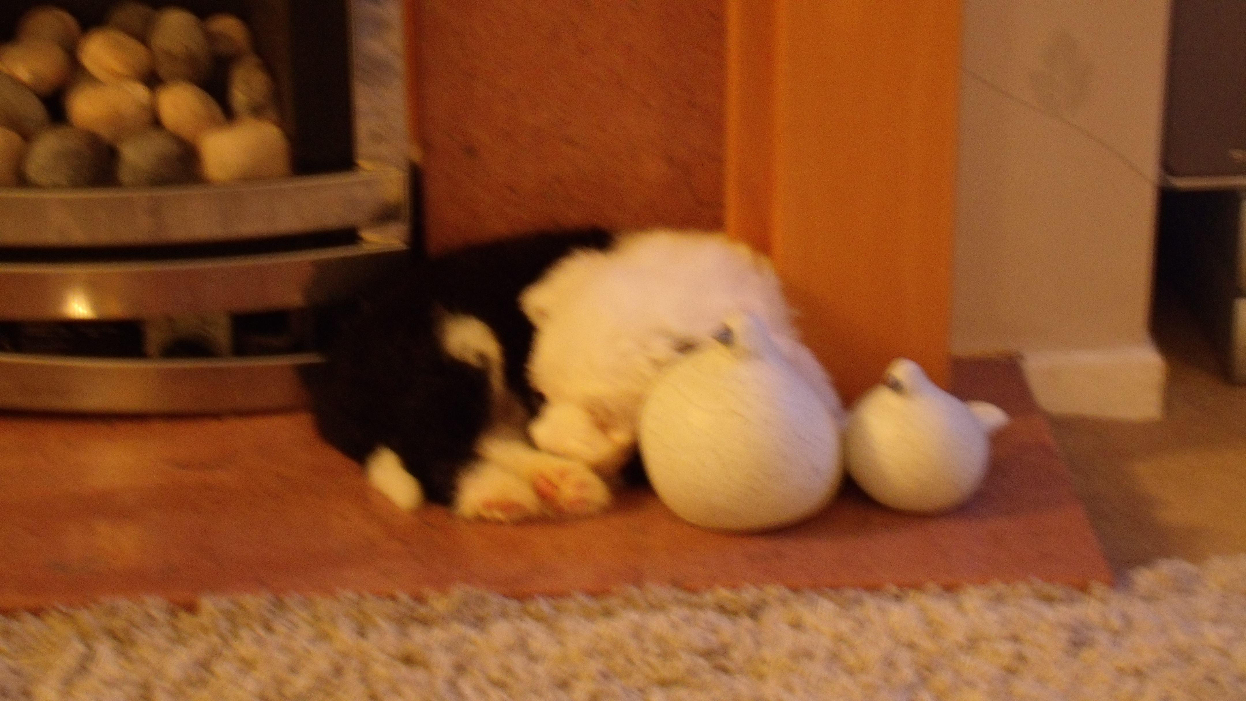 Once he’d had a little nod and got all nice and fluffy again, he was ready for a roll around on the rug, and if you have the patience to stick with this one till the end, he does like to torment a cat or two when he’s in the mood.