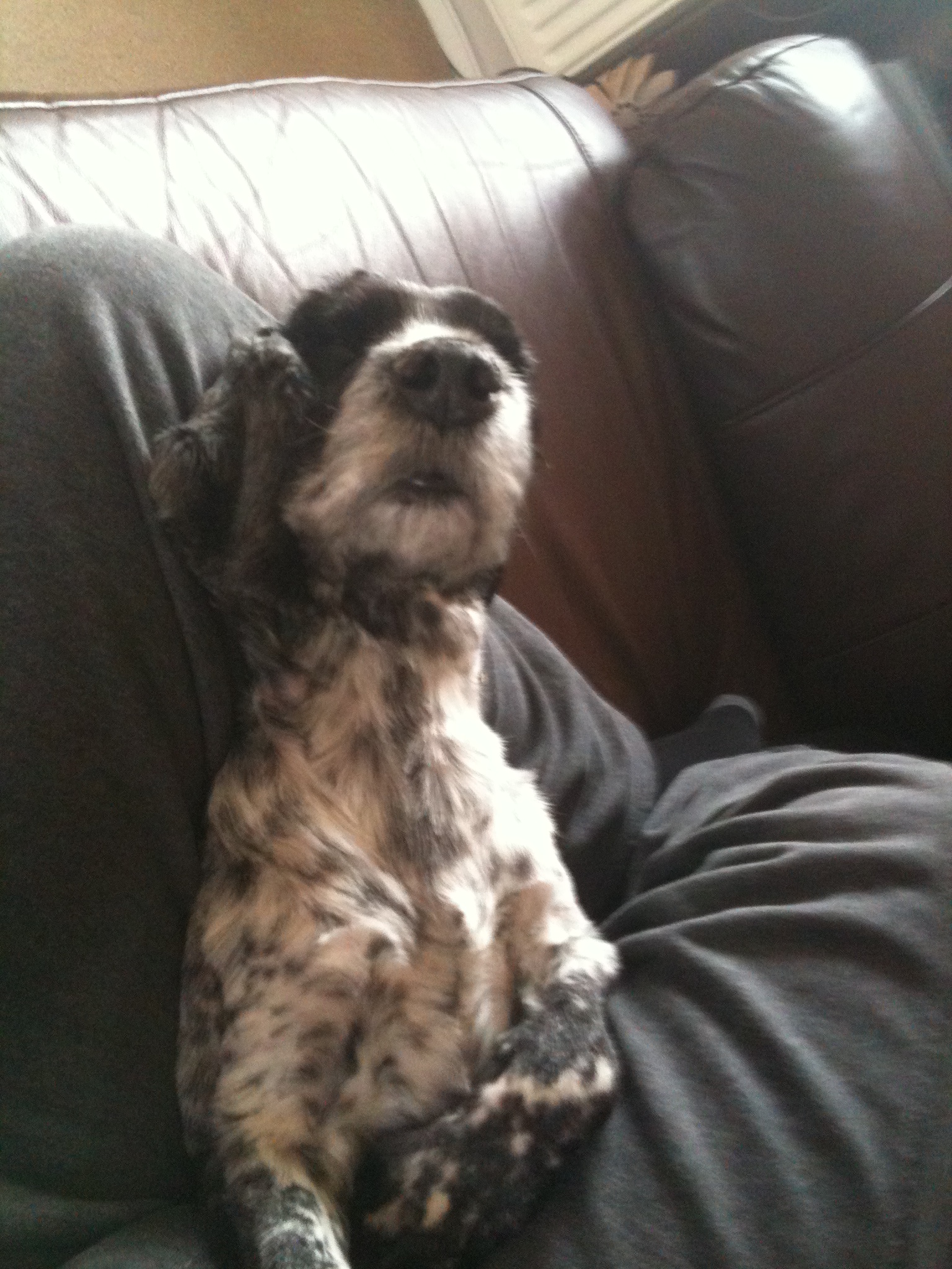 Anywho, despite seeming to enjoy the walk at the time, in hindsight, one of that length and pace may well be beyond him now. He was knackered, and also seemed to be suffering a few aches and pains all evening, and indeed most of the bloody night too, as he whimpered and wandered around keeping us awake. He has slept most of Sunday too…well, that’s alright for him!! You can see that he was a little sleepy afterwards!