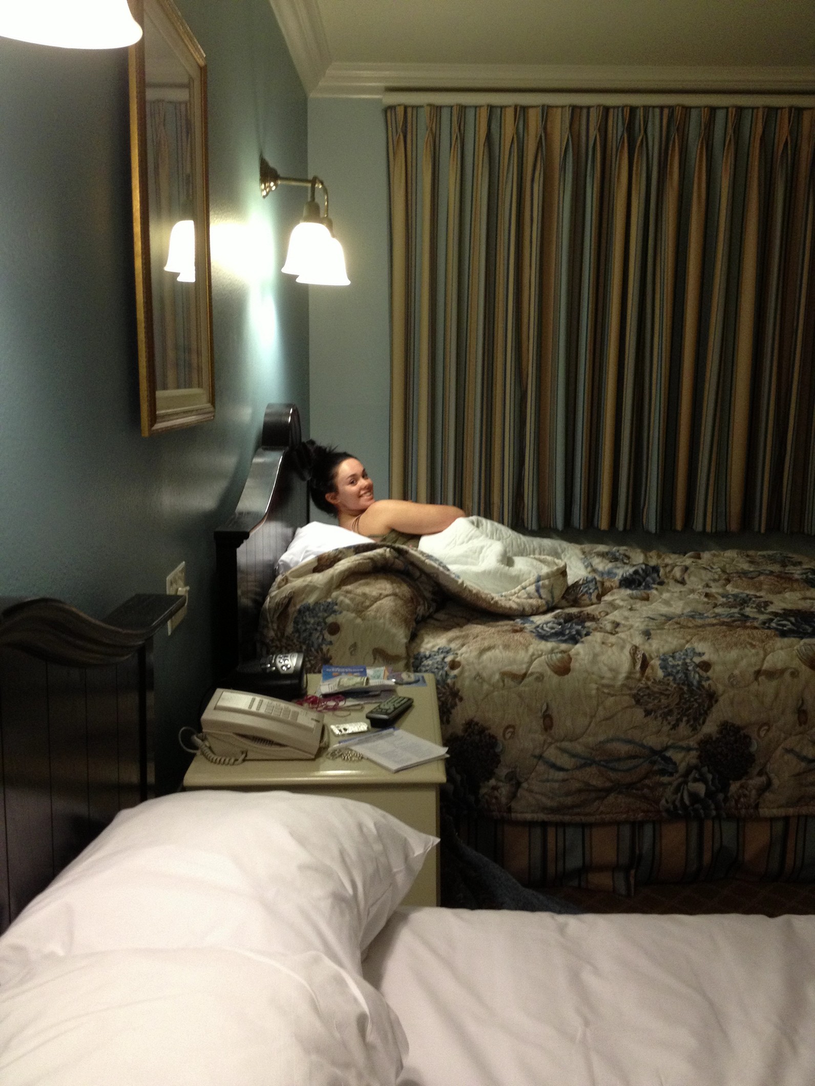 The room was lovely and as I’d been told, larger than your average Disney room. As we all enjoyed the sensation of being in bed, a massive thunderstorm was going on. It was so close and loud that it made the headboard shake. As soon as the kids were asleep, the headboard would be doing so again, no matter how tired I was. I do tend to snore quite violently when so tired.